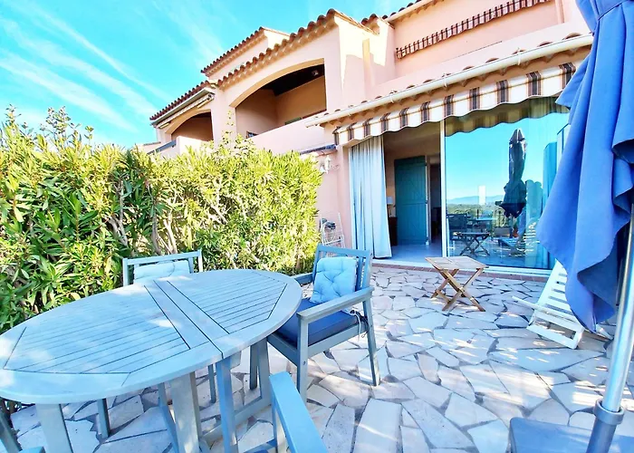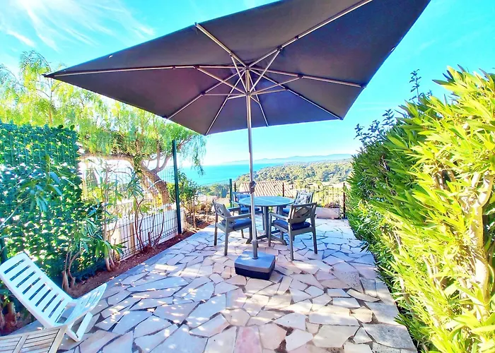 Apartmán Appartement Panorama Boulouris o velikosti 27 m^2 má venkovní plavecký bazén, sluneční terasu a vnitřní dvůr. Toto ubytování typu apartmán je vzdáleno 1,8 km od L'ile d'Or, zatímco Plage du Debarquement je vzdáleno 1,4 km.